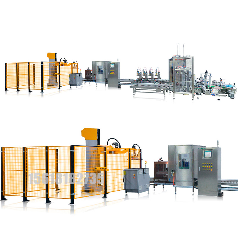 ■ 自動(dòng)輸送、自動(dòng)定位、自動(dòng)定位灌裝、自動(dòng)貼標(biāo)上蓋壓蓋、自動(dòng)碼垛;